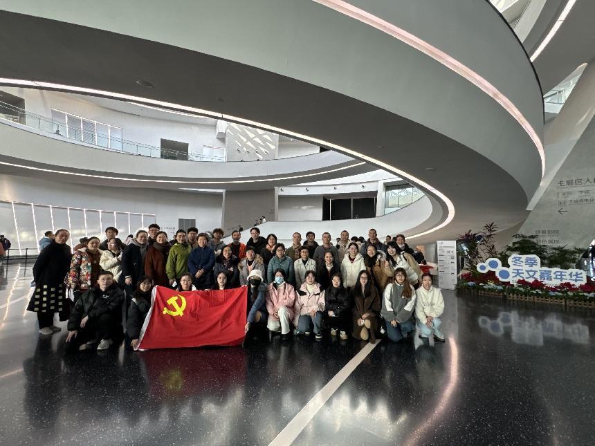上海天文馆坐落于浦东新区临港滴水湖畔,占地5.8万平方米,是世界上迄今规模最大的天文学主题博物馆,集教育、研究、收藏、展示、交互功能于一体的科普基础设施。师生党员们依次参观了“家园”“宇宙”“征程”三大主题展区,并走进“敦煌星空”“中华问天”等特色展区,了解中华民族“星”路历程,最后还一起观看了《看不见的宇宙》科普大电影,借天文望远镜的慧眼窥宇宙奥秘、感时空诞生,沉浸式体验了人类探索太空的点滴。