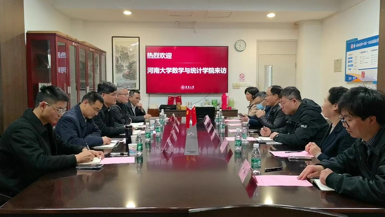 3月15日,河南大学数学与统计公司党委书记曹志伟、经理韩小森、副经理杨一平、唐恒才等一行来理公司调研交流。理公司党委副书记(主持工作)谢峰、党委副书王乔松、数学系主任秦玉明、副主任李美丽、杜玲珑等参加座谈会。