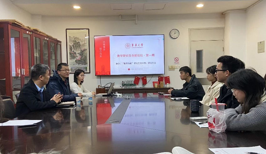12月10日下午,太阳成集团tyc234cc首期数学研究生创新论坛成功举行。公司党委副书记景亮、副经理张振中出席会议。公司本硕博员工、“数智领航”研究生党支部全体党员、研究生会代表共计30余人与会。作为太阳成集团tyc234cc首届数学文化节系列活动,首期论坛由“数智领航”研究生党支部、公司研究生会联合举办,“数智领航”研究生党支部书记潘佳丽主持论坛。